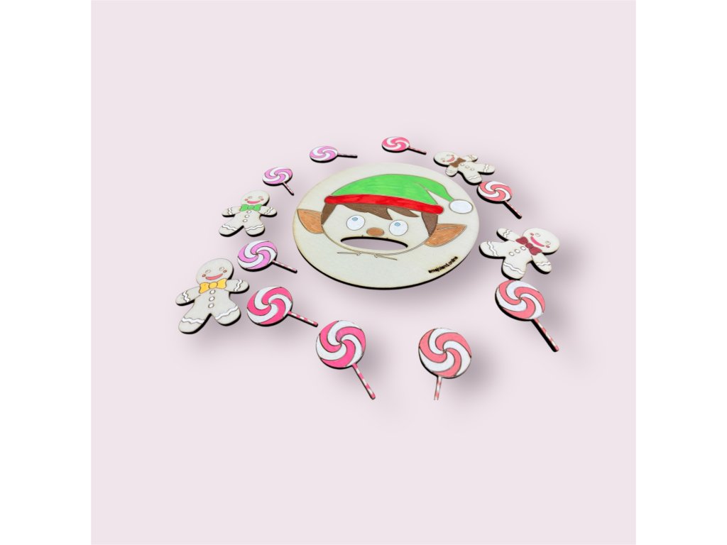 Hra "Nakŕm Elfa" je interaktívna aktivita, ktorá pomáha deťom zlepšiť ich jemnú motoriku a koordináciu ruka-oko. Tento set obsahuje obrázok veselého zvieratka s vyrezanými ústami a rôznymi farebnými kúskami jedla, ktoré sa deti snažia trafiť do otvoru predstavujúceho ústa zvieratka. Pri tejto zábavnej činnosti si deti trénujú svoju precíznosť a zručnosť v manipulácii s malými predmetmi. Táto hra podporuje aj rozvoj trpezlivosti a sústredenia, keďže deti sa musia naučiť správne cieliť a koordinovať pohyb, aby jedlo skončilo na správnom mieste. Hra je ideálna pre skupinovú aj individuálnu zábavu, a súčasne poskytuje vzdelávacie príležitosti vo forme rozpoznávania farieb a druhov potravy.