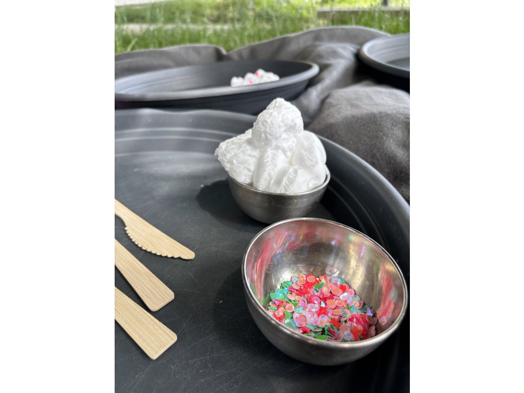 - Senzorická tácka je ideálnym miestom pre deti, kde môžu slobodne experimentovať, skúmať a učiť sa. Prístup k rôznym materiálom rozvíja ich prirodzenú zvedavosť a chut‘ objavovať nové veci.
