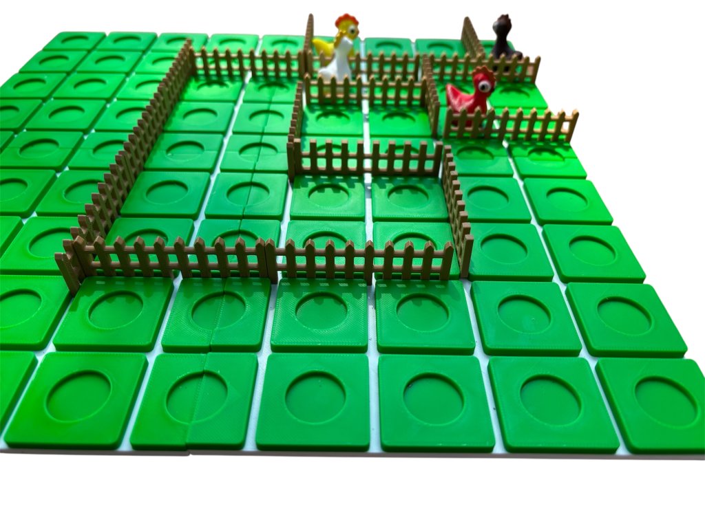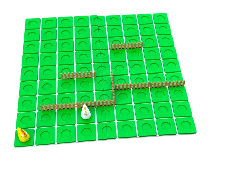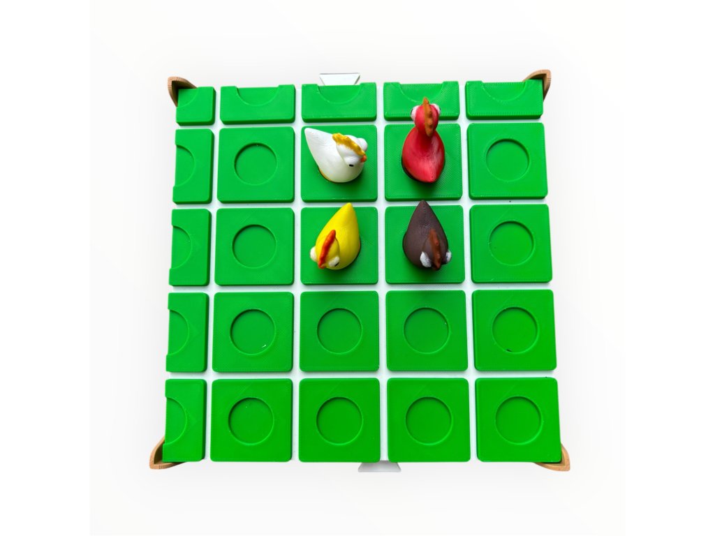 Základné pravidlá:1. Hracia plocha:• Hra sa hrá na štvorcovej mriežke• Každý hráč začína v rohu svojej strany2. Pohyb figúrok:• Hráči sa striedajú v ťahoch.• V jednom ťahu môže hráč:• Posunúť svoju figúrku o jedno políčko v ľubovoľnom smere (hore, dole, vľavo, vpravo), ak nie je cesta zablokovaná plotom.alebo postaviť plot3. Stavanie plotov:• Každý hráč má obmedzený počet plotov 5ks• Namiesto pohybu môže postaviť plot ako prekážku• Plot musí byť úplne v jednej medzere (nesmie byť na šikmo).• Ploty sa používajú na blokovanie cesty súperovi – nie však úplne! Musí vždy zostať aspoň jedna možná cesta.4. Skákanie:• Ak sa hráč nachádza priamo oproti súperovi a medzi nimi nie je plot, môže ho “preskočiť”.• Ak však za súperom je plot, hráč sa môže pohnúť doľava alebo doprava okolo súpera.⸻ Stratégia:• Rozhodni sa, či je lepšie blokovať súpera alebo rýchlo postupovať vpred.• Efektívne využívaj ploty – príliš rýchle minutie môže byť nevýhodné.